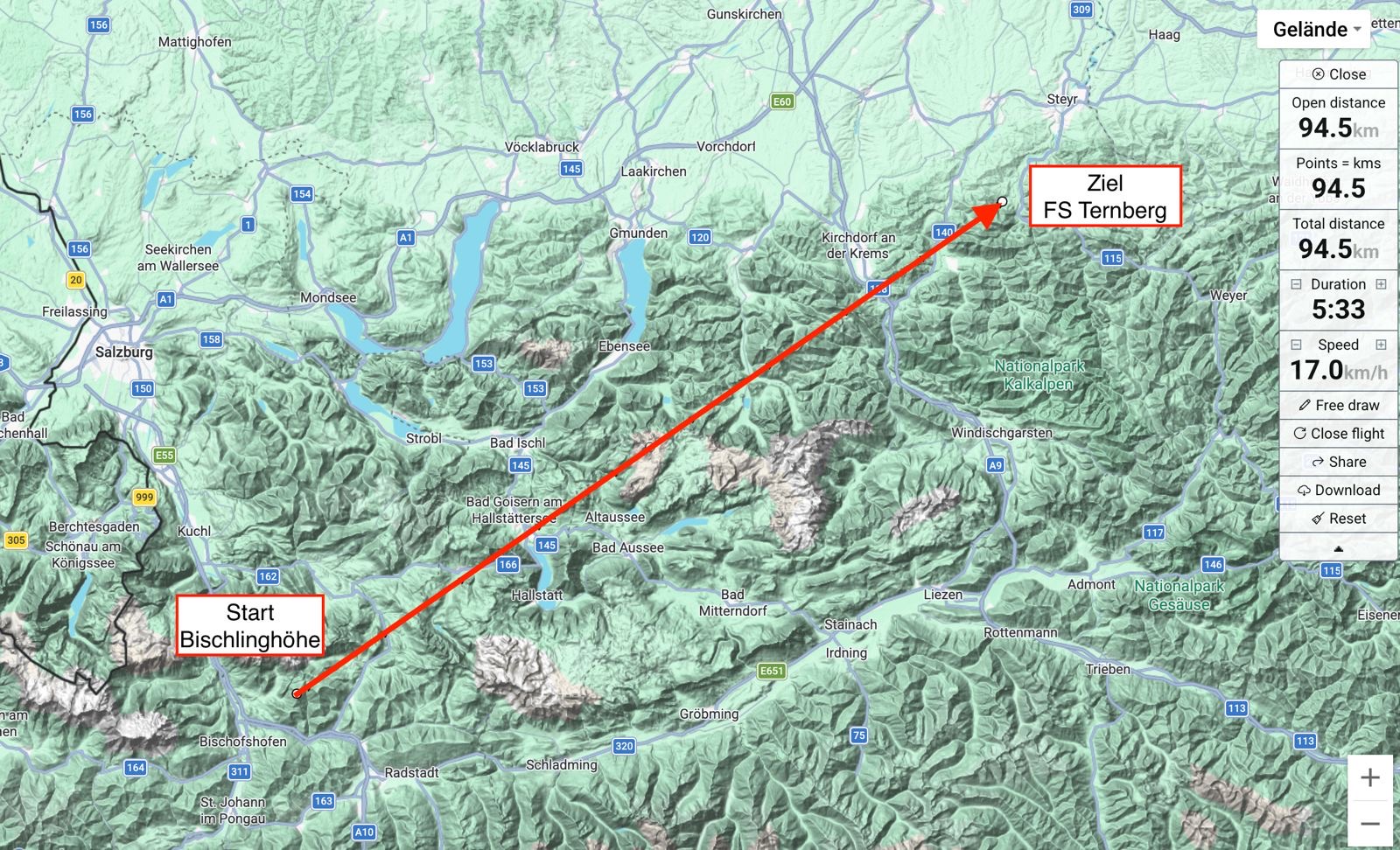 Ziel: Flugschule Ternberg (47.948761, 14.332297)