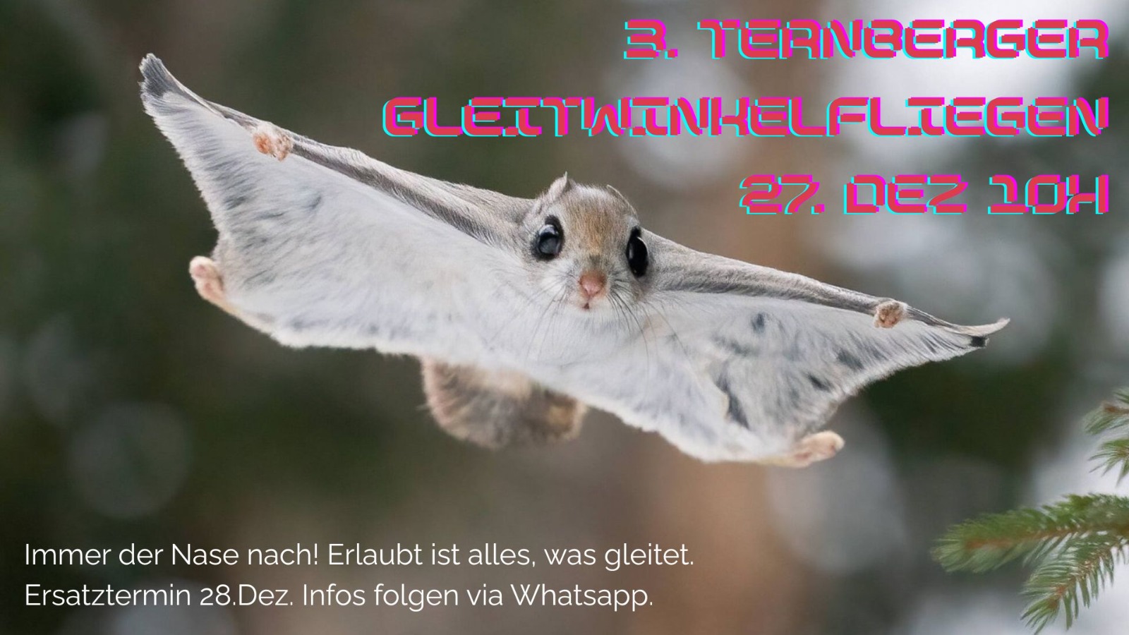 am 27. Dezember ist es endlich wieder soweit: Das Gleitwinkelfliegen geht in die dritte Runde – vermutlich wieder mit Kaiserwetter und vielen lustigen Teilnehmern. Technische Raffinessen sind nicht vonnöten – ein GPS-Track oder ein WhatsApp-Standort am Landepunkt reichen völlig aus. Wer Aufwinde findet, darf sie behalten.